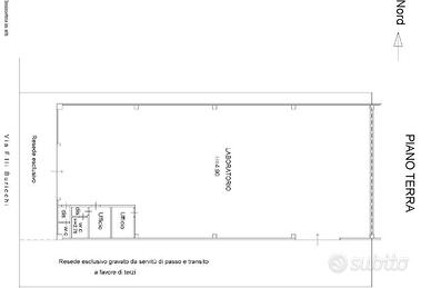 Libero su tre lati, il laboratorio è accessibile tramite ampio portone scorrevole fronte strada di 5,5 m di larghezza e 4,30 m di altezza, oltre a un secondo portone carrabile laterale, ideale per carico e scarico merci.