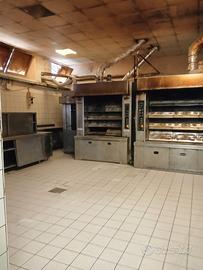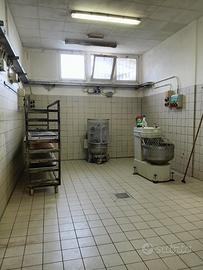 Laboratorio uso artigianale/direzionale con ampio ingresso, costituita da laboratorio lavorazione calda con forni e canne fumarie, lavorazione fredda per produzione pasticceria, magazzino e servizi igienici e ufficio.