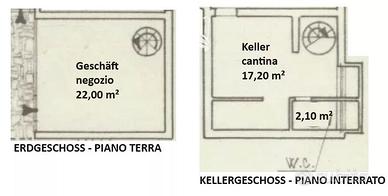 Il locale commerciale si trova al piano terra e ha una superficie netta di 22 m². Una scala interna conduce direttamente al piano interrato dove si trova la cantina con WC. Consegna immediata.