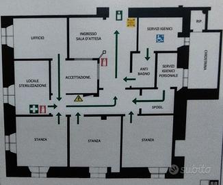 Rif:Largo Barriera - ampio ufficio (128241828) - VIA ORIANI - All'angolo con via della Madonnina, al primo piano di uno stabile d'epoca con ascensore e privo di barriere architettoniche, proponiamo in vendita un ufficio (era utilizzato come studio dentistico) di circa 110 mq trasformabile in appartamento. Internamente si compone da ingresso, sala d'attesa, quattro stanze, ufficio, due bagni (uno per i pazienti e uno per i dipendenti con spogliatoio/vano tecnico. Le chiostrine sono ad uso esclusivo. Possibilità posto auto pertinenziale. In una palazzina d'epoca completamente ristrutturata nel 2004 con ascensore e acqua fredda centralizzata; le spese di gestione condominiale sono contenute ed ammontano a circa 1200 €/anno. Il riscaldamento è autonomo ed è presente l'impianto di condizionamento. Tutti gli impianti sono a norma, inoltre è presente il videocitofono. La porta è blindata mentre gli infissi sono in pvc a doppia vetrocamera. Possibilità di posto auto pertinenziale a € 35.000. Classe Energetica D 74,17 kWh/m2. A/10 - € 2970,92 I dati, le immagini, le planimetrie contenute nel presente annuncio pubblicitario hanno natura indicativa e non costituiscono né potranno costituire contenuto e/o elementi di riferimento ai fini di eventuali futuri contratti e/o per la determinazione del loro contenuto. Tutti gli attestati di prestazione energetica degli immobili sono a disposizione dei clienti nei nostri uffici di Trieste e Villach. - Classe: D - IPE: 65.00 kWh/mc anno