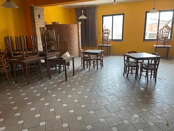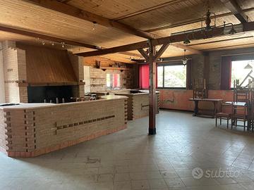 Il locale è composto da una sala da pranzo contenente circa 300 posti a sedere, un ampia cucina, un bellissimo camino in mattoni per poter specializzarsi sulla cottura alla brace, forno per pizza conclude l'immobile 8 camere ciascuna con il suo bagno privato e un ampio parcheggio.