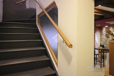 Le scale interne conducono alla sala da pranzo con 30 coperti, una terrazza con la possibilità di creare 10 coperti, e un'altro locale di deposito.