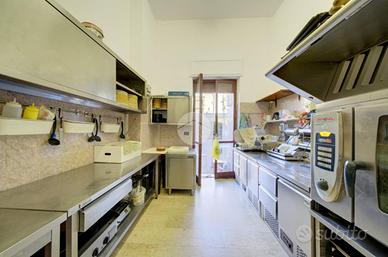 P-1 Magazzino 100 mq ca di cui 60 mq ca commerciali. Possibilità di carico e scarico da cortile e garage.Dispone di attrezzature di primo livello, arredi,inclusa una cucina completa. La capacità ricettiva è elevata con posti a sedere interni e esterni in dehors .L'immobile è dotato di n. 4 ampie vetrine che permettono una grande luminosità naturale.
