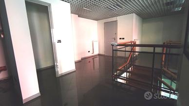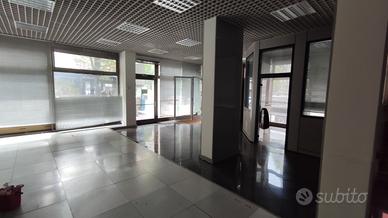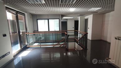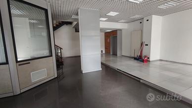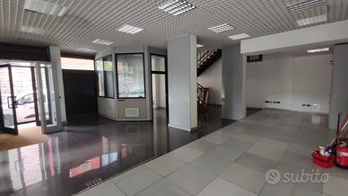 locale d'affari commerciale disposto su due livelli con 4 grandi vetrine ad angolo al pianoterra fronte strada. La proprietà era adibita per tanti anni a banca/istituto di credito. Attualmente il pianoterra si presta a zona commerciale adatta anche alla vendita al dettaglio, mentre il piano superiore raggiungibile con scala interna adibito ad uffici dispone anche di una entrata indipendente dal vano scale. Altezza soffitti al piano terra mt.3,70 e al primo piano mt. 2,70. Si dispone di servizi interni con un bagno al primo piano. Serramenti in alluminio di ottimo livello con porta d'uscita di sicurezza. Riscaldamento centralizzato