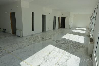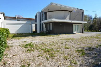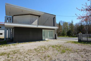 (Riferimento: D-552) SAN GIORGIO DI NOGARO: in zona di fortissimo passaggio, sulla strada principale, in vendita edificio di nuovissima costruzione composto da due enti e un'autorimessa doppia. Al piano terra locale commerciale adibito a negozio composto da un salone principale di circa 100 mq da adibire a sala vendita/esposizioni, un ufficio, un bagno con antibagno e vari locali accessori da adibire a ripostigli/archivi. Al piano superiore, attualmente al grezzo, ci sono diversi locali da adibire a deposito o ripostiglio, predisposizione per servizi igienici e una terrazza di circa 25 mq. Fra i due livelli è stato predisposto lo spazio per installare un montacarici, oppure un ascensore. Il primo piano, volendo, può essere adibito ad appartamento oppure ad ufficio. Esternamente autorimessa doppia con basculante e corte esterna esclusiva di circa 580 mq. Condizioni perfette, possibilità di personalizzazione.
