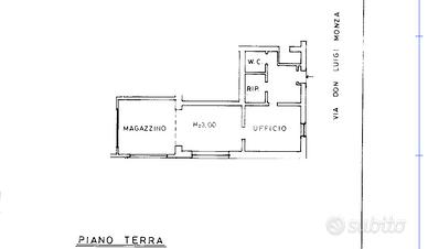 L'immobile sito al PIANO TERRA con ottima visibilità è così composto: ingresso in disimpegno, ripostiglio e un bagno; Proseguendo 2 uffici di circa 17mq l'uno ed un MAGAZZINO di 20mq.