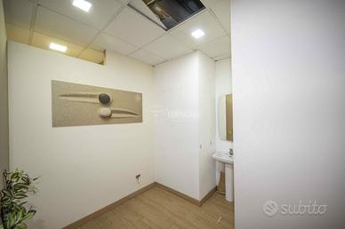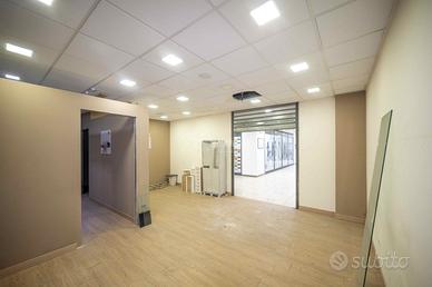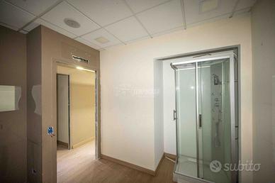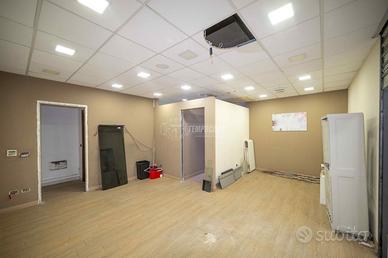 Locale commerciale dotato di bagno e comodo anti bagno, più 3 locali ricavati con una suddivisione in cartongesso oltre la stanza principale su cui c'è l'ingresso.