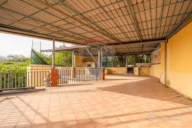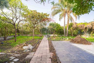 All'ingresso principale, accediamo tramite un cancello carrabile che conduce ad un cortile dotato di un comodo ripostiglio/garage di circa 20 mq, ideale per il ricovero di auto o il deposito di merce. Salendo le scale, ci troviamo davanti ad un ampio terrazzo coperto di circa 100 mq, dotato di una tettoia che offre una piacevole zona all'ombra, arricchita da un forno a legna. Dal terrazzo, attraverso un breve tratto di giardino pavimentato, si accede ad un giardino esclusivo di circa 300 mq, caratterizzato da alberi da frutto e una zona ideale per intrattenere gli ospiti.
