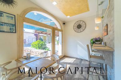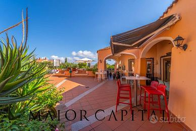 La parte preziosa della proprietà è la splendida piazzetta privata di 100 mq, che garantisce elevata visibilità e uno spazio esterno ideale per organizzare eventi live estivi o godere della vista mare.