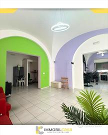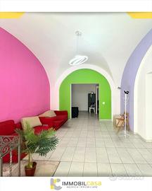 Il locale è diviso in due livelli di circa 100 mq ciascuno con a piano terra 4 vani e bagno, mentre il piano interrato di divide in 5 vani. Le volte tonde a piano interrato lo rendono elegante e caratteristico.