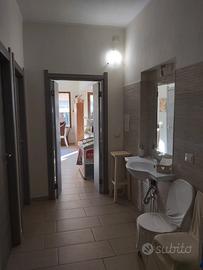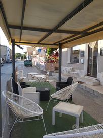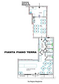 Piano Terra: locale commerciale di 44 mq circa e laboratorio di mq 6, disimpegno, doppio bagno uomo e donna, bagno per il personale, ampio cortile posteriore attrezzata con pergolato e posti a sedere. A disposizione un angolo cottura esterno con barbecue.