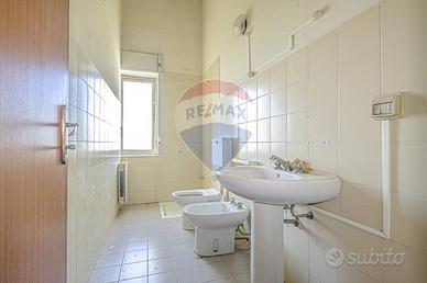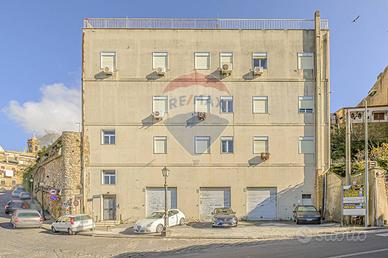 Ledificio è composto da complessivi cinque piani, con accesso sia da Via Circonvallazione che da Via Porta del Vento; al piano terra su Via Circonvallazione limmobile è composta da quattro vani garage, per circa 120 mq; al primo piano e al secondo, sempre da Via Circonvallazione, due vani magazzino di circa complessivi 300 mq; al piano terra da Via porta del Vento magazzini per 370 mq; completa ledifico un complesso di tre appartamento al primo piano dal Via Porta del vento, 185 mq, 100 e 105 mq, con circa 280 mq di lastrico solare.