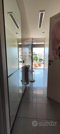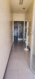 L'ingresso principale si apre su un ampio spazio luminoso, ideale per l'esposizione di prodotti o per accogliere clienti in un'atmosfera accogliente.