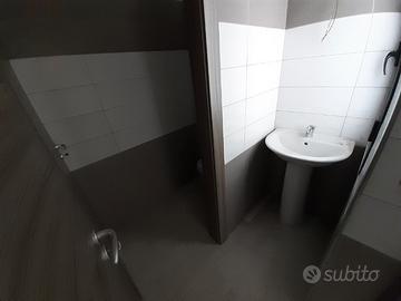 Ingresso su ampio locale ideale per esposizione/rivendita, spazioso vano sul retro con tre bagni e disimpegno con predisposizione scarichi cucina.