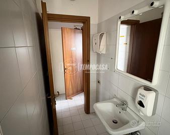 Sul retro troviamo un'area dedicata a magazzino/laboratorio, con spazi di servizio, servizi igienici e vani accessori utili per l'organizzazione del lavoro.