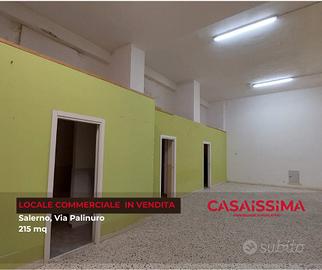 In vendita ampio locale commerciale di 215 mq situato in Via Palinuro, parallela di Via Leucosìa e a pochi passi dal mare, nel cuore del quartiere Mercatello. La posizione è centrale, servita e facilmente raggiungibile. L'immobile si trova al piano terra ed è dotato di tre ampie entrate con saracinesca, due bagni, spogliatoi e un'altezza interna di 5 metri che consente anche la realizzazione di un soppalco. Gli spazi possono essere frazionati secondo le esigenze. Elemento di grande valore aggiunto: il locale può essere trasformato anche in garage, grazie alle ampie aperture su strada e alla conformazione interna che ne permette un utilizzo flessibile sia commerciale sia come spazio per box auto o autorimessa. La metratura generosa e la versatilità rendono l'immobile ideale per scuole di danza, palestre, attività sportive, studi professionali o attività che richiedono ampi spazi. Un'opportunità interessante in una zona strategica, vicinissima al mare e al centro del quartiere.