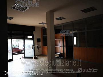 I locali, prospicienti la strada e dotati di portico coperto, dispongono di n. 3 posti auto esclusivi in linea ubicati lungo l'asse viario. L'immobile, in ottimo stato di conservazione, è attualmente suddiviso in reception, tre ambienti operativi, archivio e n. 1 servizi igienici, mediante pareti interne in legno e vetro. Le due unità originarie risultano accorpate in un unico spazio commerciale mediante demolizione della parete divisoria, intervento non ancora regolarizzato sotto il profilo urbanistico
