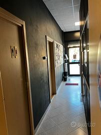 Posto al piano terra, il locale è composto da 2 stanze da adibire a uffici, un ingresso/sala d'attesa e un bagno per un totale di 63mq più un deposito seminterrato di altri 40mq al quale si accede da una scala interna.