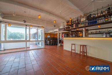 La sua posizione sulla strada principale lo rende facilmente accessibile e visibile, grazie anche alle due vetrine e alla ampia veranda esterna.