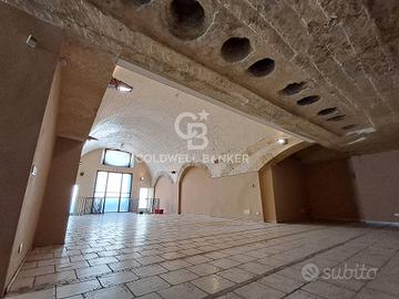 Al piano terra vi è un ampio vano, scavato nella roccia e tre ambienti separati, utilizzabili come ufficio ed un bagno. Piano 1°: due ampi ambienti, uno a volte a stella e grandi finestre, altro con volta a botte. Dalle scale in pietra si giunge al piano interrato dove troviamo un ampio vano con volte a botte luminoso. E presente un camino. Il pavimento è in parte in pietra, decorato con degli intarsi allingresso, ed in parte è in gres effetti chianca e cotto antico.