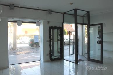 commerciale con ampio piazzale anteriore di 65 mq composto da 3 vani + disimpegno. Ingresso con ampio locale con due vetrine, locale sul retro con una vetrina lato via feltrino e locale retro-negozio.