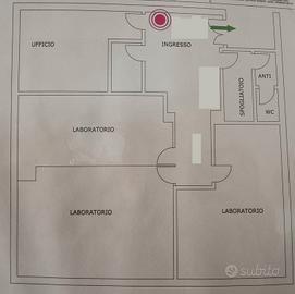 L'immobile si sviluppa su una superficie di circa 144 mq e presenta una distribuzione funzionale e ordinata: ingresso con zona reception, prima stanza uso ufficio, spogliatoio con antibagno e bagno, oltre a tre stanze ad uso laboratorio, suddivise da pareti in cartongesso e vetrate facilmente rimovibili per adattare gli spazi alle diverse esigenze operative.