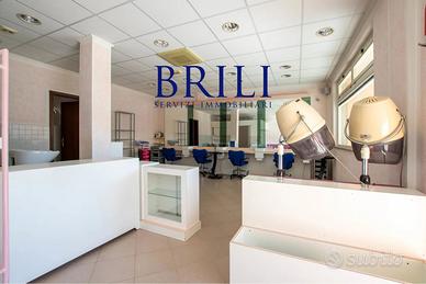 Attualmente adibito a parruccheria, il locale accoglie i visitatori in un ambiente luminoso e funzionale, dove le ampie superfici a specchio amplificano gli spazi e creano un'atmosfera professionale e curata. La distribuzione interna è già ottimizzata per l'accoglienza dei clienti, rendendolo una soluzione "chiavi in mano" per chi opera nel settore beauty, come barber shop o centri estetici.