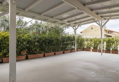 Completano la proprietà un'area destinata a parcheggio privato di circa 26 metri quadri e vari vani accessori che garantiscono la massima funzionalità operativa. L'intero immobile è circondato da uno spazio di pertinenza esclusivo, per una superficie complessiva del lotto di circa 680 metri quadri.