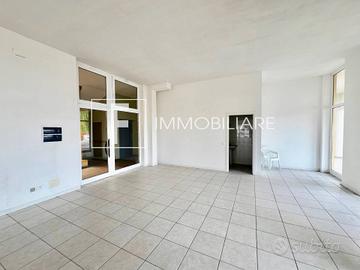 Lo spazio interno di circa 90 mq calpestabili è organizzato in uno spazio espositivo principale con pareti divisorie utili a creare differenti situazioni o uffici separati, a servizio della propria attività.