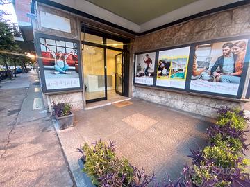 Proponiamo in affitto locale commerciale di 100 mq situato in posizione ad angolo con quattro ampie vetrine che garantiscono grande visibilità e luminosità.