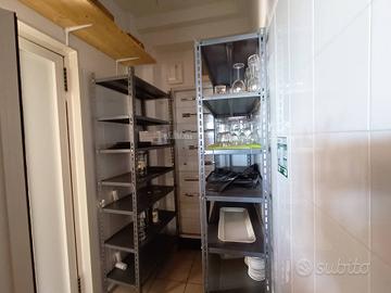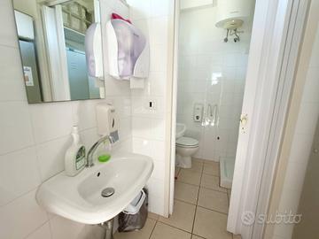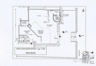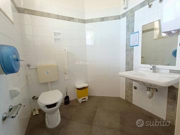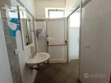 E' presente un piccolo magazzino merce, bagno completo di antibagno e spogliatoio oltre ad un bagno e antibagno per il pubblico presente nella sala principale con affaccio all' esterno.
