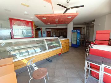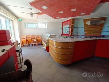 Viene proposto in vendita locale commerciale attualmente arredato e locato, avviato ad attività di ristorante/pizzeria, con cappa interna e braceria esterna con doppia cappa a norma, locale con nuove attrezzature anno 2021 da adibire volendo anche a gelateria (presente attrezzatura completa), dotato di tavoli, sedie, divanetti completamente arredato.