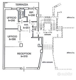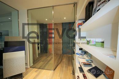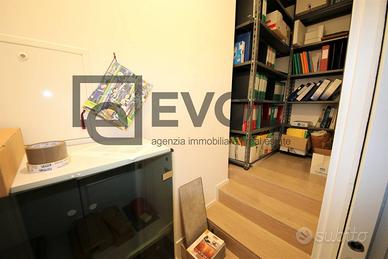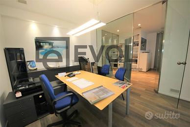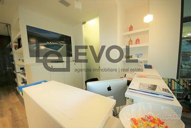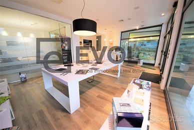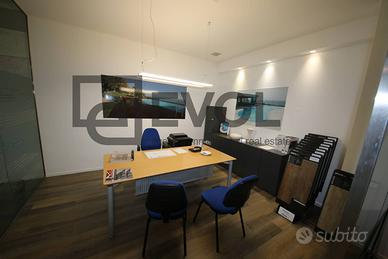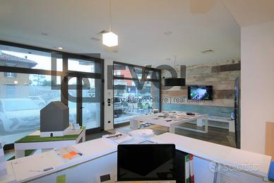 Negozio con finiture di altissima qualità e alta visibilità. l locale si sviluppa all'ingresso su una superficie per l'esposizione molto ampia, dove troviamo un ufficio con pareti vetrate, tramite un disimpegno possiamo accedere agli altri due uffici uno direzionale e uno più contenuto da cui si può accedere ad un terrazzo, lo spazio si sviluppa con un magazzino e il bagno. Ovviamente questi spazi possono essere adibiti a magazzini, ripostiglio e camerini.