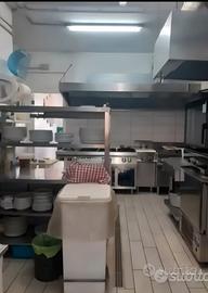 Locale commerciale di circa 250 mq ,adibito a ristorazione con annesse 2 attività di cui una take away con apposito locale e completamente attrezzato con banco caldo freddo, e l altro locale adibito a pescheria ma non volendola utilizzare potrebbe essere un ulteriore locale da adibire a piacimento. Il restante della struttura è adibita a ristorante con 2 celle frigo, cucina completamente attrezzata di 6 fuochi, forno nuovo ,lavastoviglie ,2 lavandini, abbattitore,banchi da lavoro, friggitrice,bollitore, e colonne frigo. Inoltre dispone di posti al chiuso dotati di condizionatore e all aperto con copertura automatizzata. Può contenere fino a circa 100 coperti.