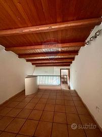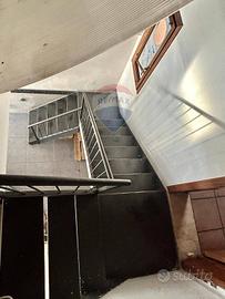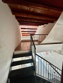 Al piano terra si trova lambiente principale con bagno, collegato tramite una scala in ferro dal design moderno a un soppalco versatile, ideale come ufficio, area tavoli o zona operativa.