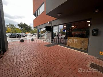 Locale situato in un centro commerciale con grande parcheggio esterno.