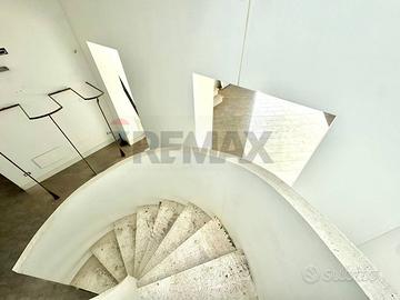 L'immobile gode di elevata visibilità, grazie alle ampie vetrate, balconi e un solarium panoramico. Internamente si presenta spazioso e luminoso, con una suddivisione in nove vani oltre ai servizi.