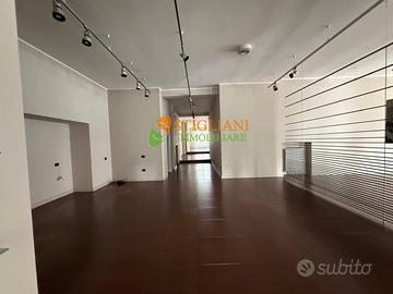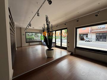 Zona semicentrale, con molta visibilità e traffico pedonale e veicolare, locale commerciale fronte strada, di metri quadrati 210 circa, composto da due ampi vani, bagno e antibagno. Tre ampie vetrine fronte strada. Impianto di riscaldamento autonomo. Possibilità di ulteriori metri quadrati 230 adiacenti. 10,00/mq