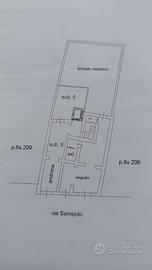 L'accesso all'immobile è consentito tramite un doppio ingresso indipendente rispetto allo stabile in cui è ubicato, internamente presenta un unico vano, un bagno con anti-bagno e un ripostiglio per un totale di mq 50 circa. Esternamente vi è uno spazio esterno di pertinenza esclusiva di mq 60 circa.