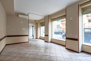 Affitto locale commerciale mq.110 circa, per brevi e lunghi periodi con nr.7 vetrine 3 ingressi, piano terra, zona centrale Macerata, stato discreto, con bagno e antibagno e altro bagno di servizio.