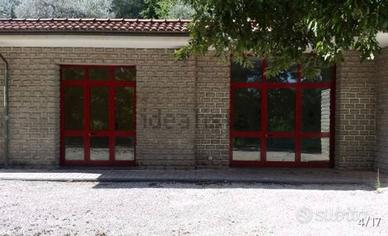 Sul restante perimetro dell'immobile, l'ampia dotazione di finestre ne rende l'interno sempre utilizzabile con luce naturale è presente un ampio bagno con antibagno adatto a persone disabili. La struttura è realizzata in muratura con altezza interna è pari a 3,50m. Adiacente all'immobile, nell'area esterna di pertinenza, è presente una tettoia con una superficie pari a 60 mq.