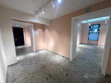 Layout interno: Ingresso su due ampi disimpegni di passaggio, 3 eleganti sale con affaccio su Via Belmonte, ulteriori 2 camere riservate, zona servizi e aree dedicate a camerini di prova o magazzino.