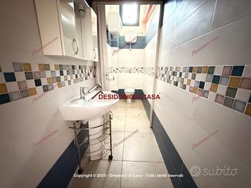 La proprietà è rifinita con pavimentazione in ceramica, infissi in alluminio e dispone di due posti auto scoperti assegnati, garantendo praticità per chi vi lavora o per la clientela.