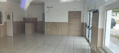 Vendo o affitto come da titolo di mq. 100 (possibilità di altri mq. 100 con locale attiguo) con area esterna di pari estensione a circa m. 300 dall'uscita autostrada A25 Alanno-Scafa in palazzina di recente costruzione. Ampio parcheggio privato recintato.