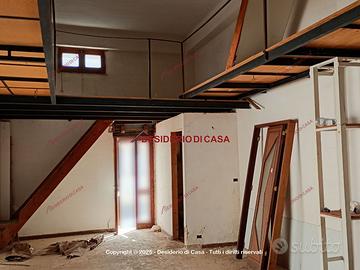 Attualmente si presenta con due ambienti comunicanti che offrono ampia libertà di riorganizzazione degli spazi interni; un bagno è già presente, mentre un soppalco di circa 17 mq in legno e ferro rappresenta un utile ampliamento, perfetto per uso archivio, deposito o anche per ricavare un angolo ufficio discreto.