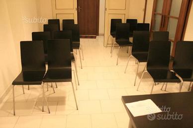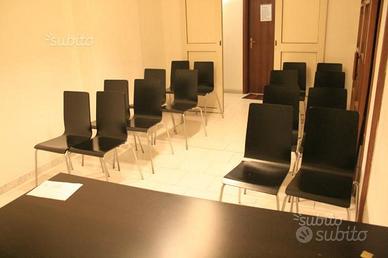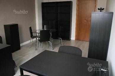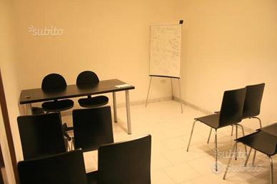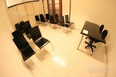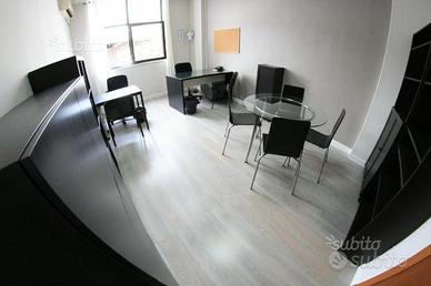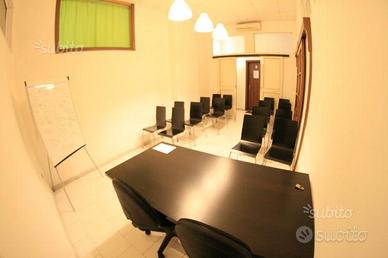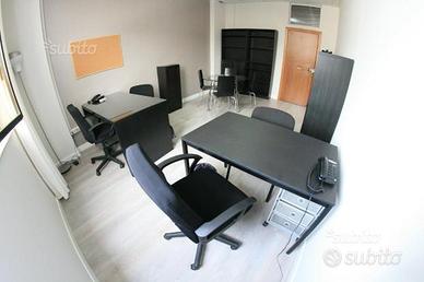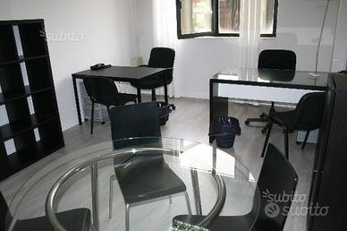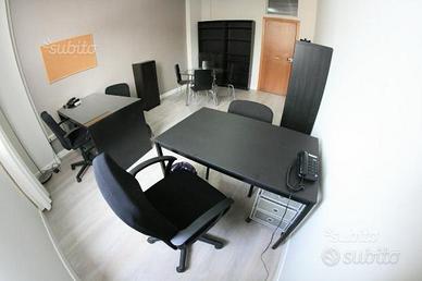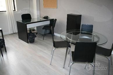 o 2 scrivanie + tavolo riunioni in vetro, possibilità di aggiungere scrivanie e mobili;