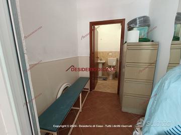 La pavimentazione in cotto dona all'ambiente un tocco di eleganza e rusticità, mentre le due saracinesche elettriche e gli infissi in alluminio garantiscono sicurezza e durabilità.