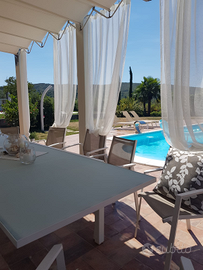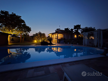 Piscina, con prendisole, giardino curato nei minimi dettagli, impianto luci notturne guardino piantimato di 4000m^ con ulivi secolari.