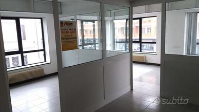 Luminoso ufficio a Pasian di Prato composto da: ingresso, 5 stanze e i servizi igienici. Lo spazio interno è stato suddiviso con pareti vetrate rimovibili.