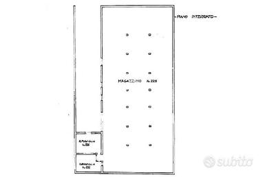 - mq 240 circa a piano terra completi di servizio, impianto elettrico, rilevatori antincendio e portone manuale alto circa 2.5 metri.